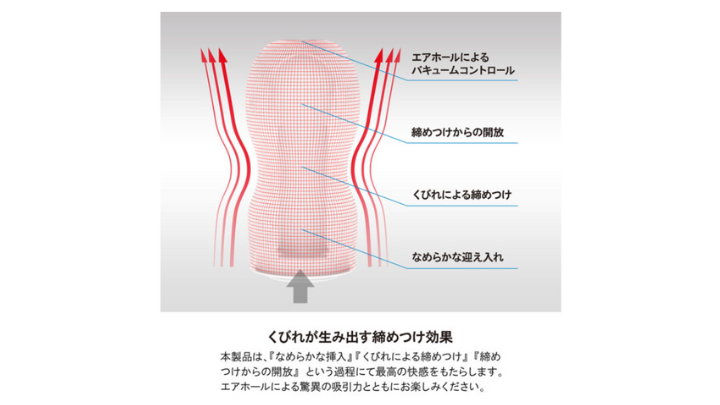 - オリジナルタイプは挿入感が狭くきつく、亀頭部分への刺激は強いが、ペニス全体への吸い付き感は小さい